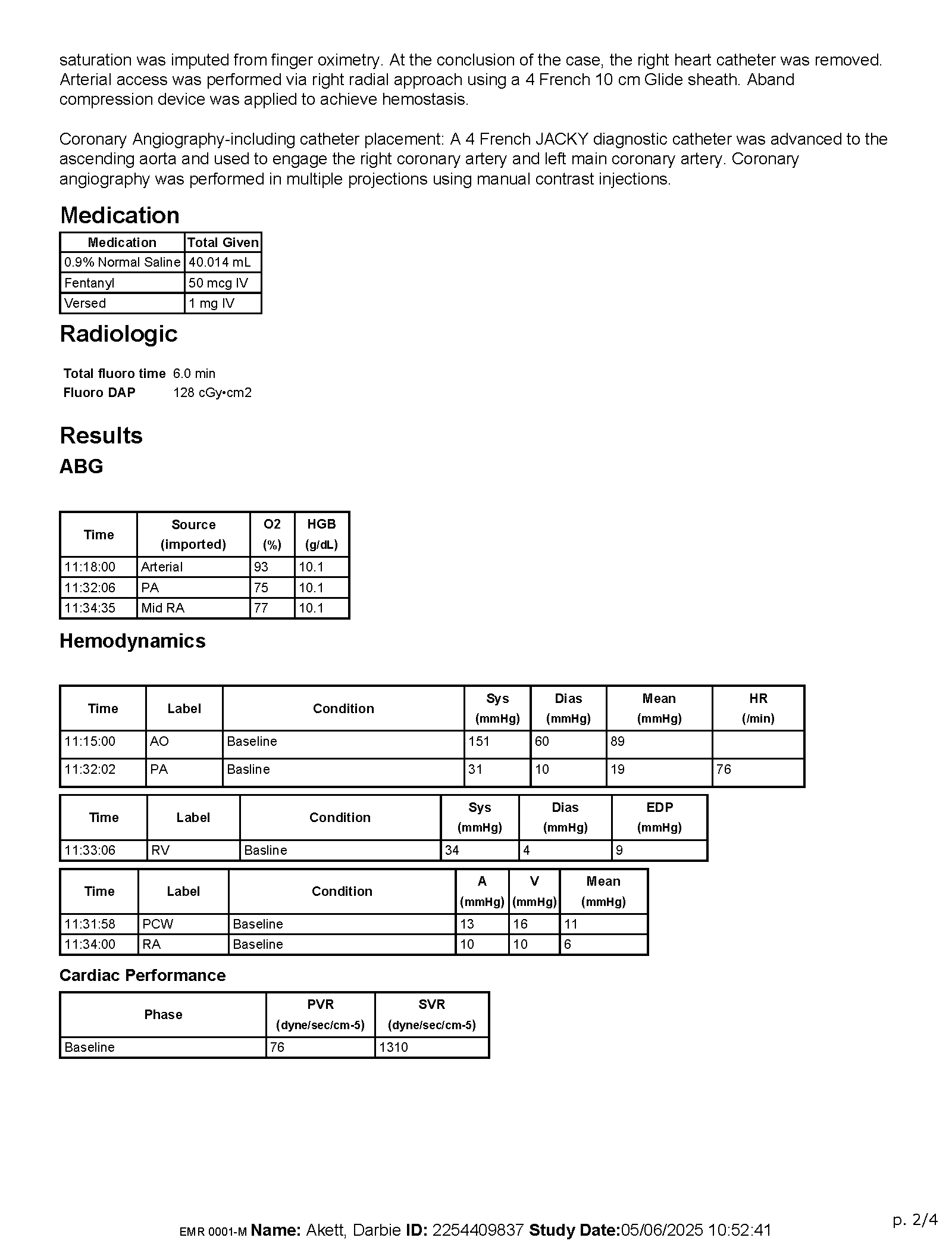- Right and left heart hemodynamics