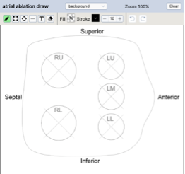 With tools for all EP study types and procedures, data flows from hospital information systems, nursing note, recording systems and via inventory to assist the staff in creating a comprehensive final report. The staff, by choosing a few values on a form, can create grammatically correct logs and conclusions with minimal effort. EncaptureMD EP also includes many smart graphics. Users can use these drawing tools to describe ablation patterns, highlight VT sources and much more.