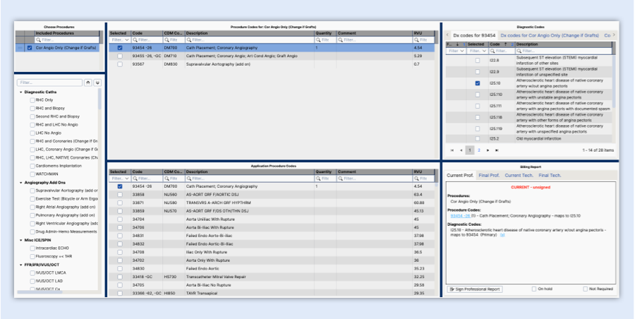 EncaptureMD for Cardiac Catheterization provides an intuitive and comprehensive set of tools that allows every member of the team to collaboratively and accurately schedule, document cases, track inventory and bill for the procedure. All coronary, cardiac and peripheral vascular procedures including TAVR, ASD, PFO closure devices, Mitra clips and mechanical assist reports can be created. Optional nursing documentation, superior to other systems, is available. Data flows effortlessly from EMR and lab systems.